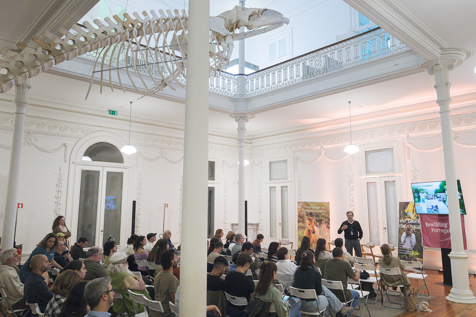 The 2nd National Rewilding Symposium, with the theme ‘The Return of Wildlife’, held on 3 and 4 November at the Biodiversity Gallery, was a huge success, attracting more than 2,000 online viewers and more than 100 in-person participants per day, practically filling the venue to capacity and confirming the growing public interest in rewilding and ecological restoration in Portugal.