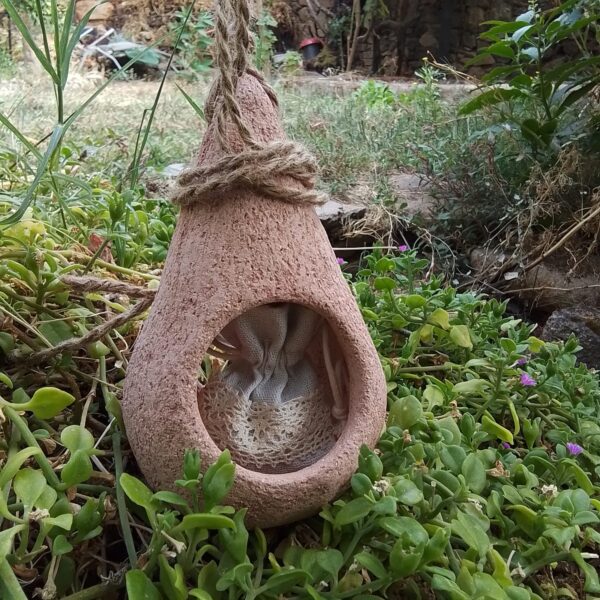 Alimentador para aves, produzido em cerâmica, pela artista local Valérie Censier. Traz também um saquinho com sementes de girassol para que possa colocar diretamente a uso. Uma forma original e especial de ajudar a vida selvagem no local onde vive.