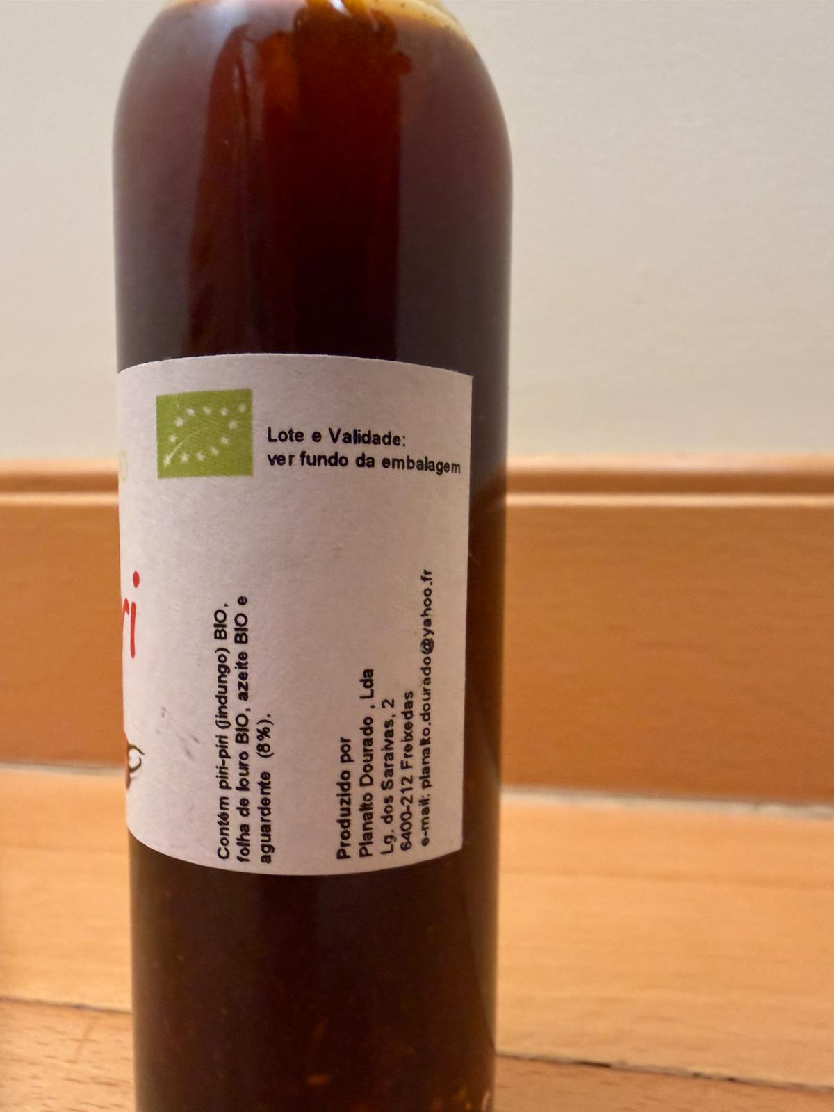 Ingredientes: Piri-piri (jindungo) BIO, folha de louro BIO, azeite BIO, aguardante (8%).