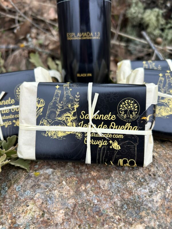 100g moisturising soap with beer, a partnership between Quinta Vale do Tourão and Cantinho Café. Quinta Vale do Tourão is a farm with organic almond and olive groves in Figueira de Castelo Rodrigo, Cantinho Café is located in Castelo Rodrigo and is the only brewery in the region, both are members of Wild Côa Network. Rewilding Portugal seeks to highlight local products from the Greater Côa Valley and support nature-based businesses in this region.